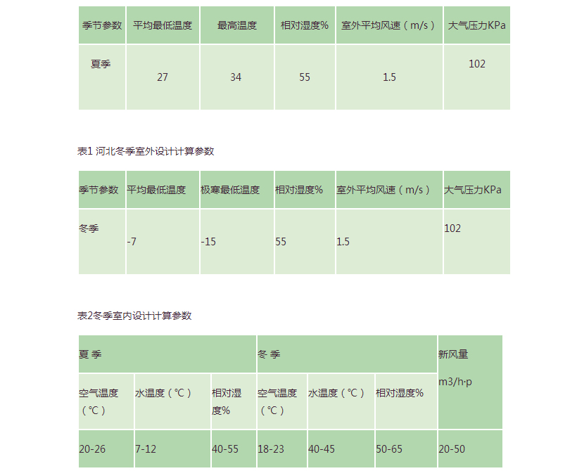 表1 河北夏季室外設(shè)計(jì)計(jì)算參數(shù)